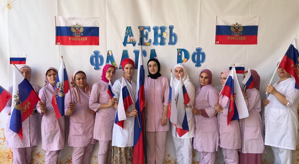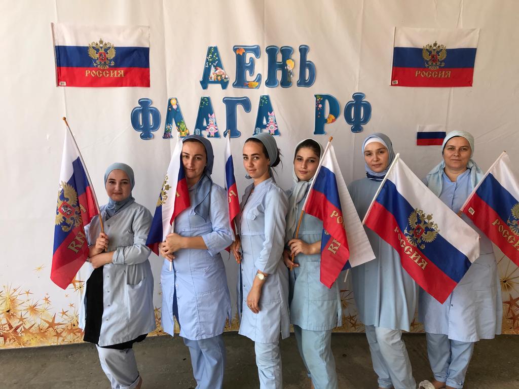 Флешмоб с участием персонала детского сада приуроченный ко Дню Флага Российской Федерации