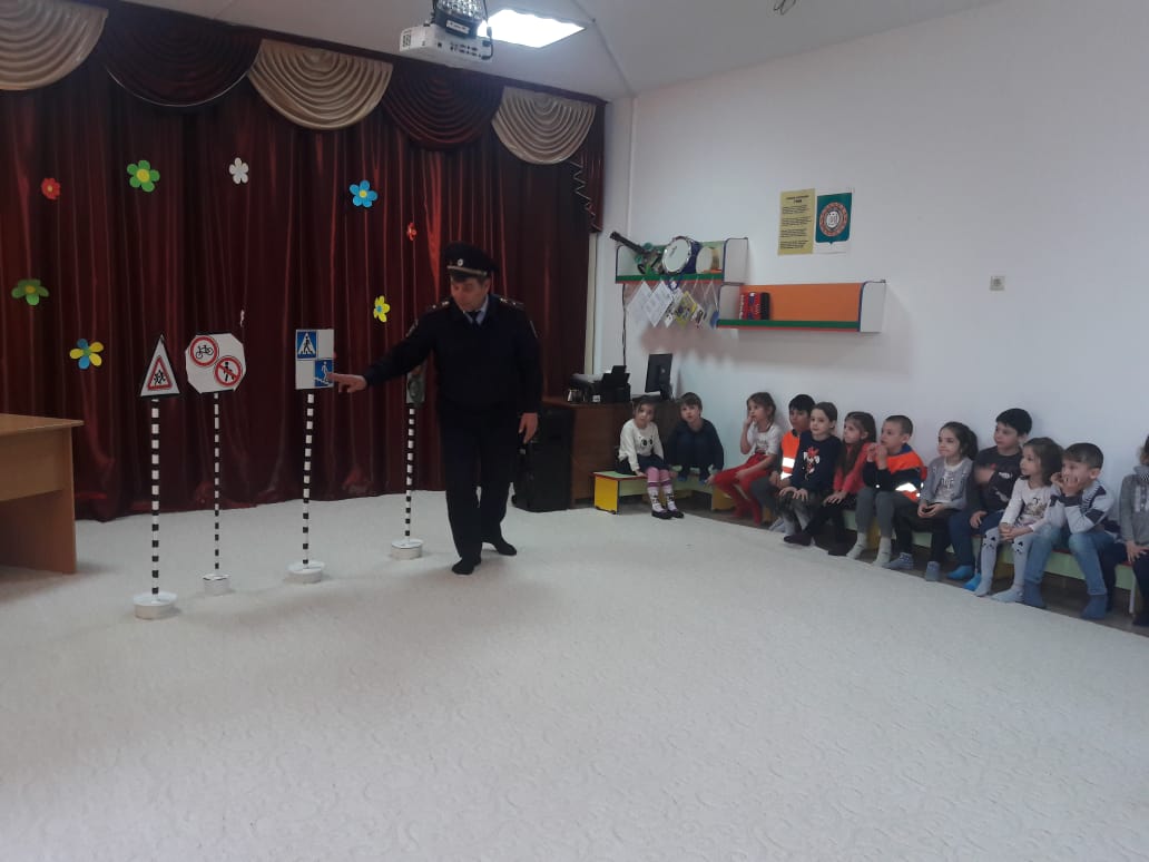 29.03.2019С целью проведения предупредительно-профилактической работы, направленной на формирование ответственного отношения родителей, воспитанников и педагогов к соблюдению правил дорожного движения и сокращение дорожно-транспортных происшествий с участием команды юных помощников инспекторов движения "Мы за безопасное движение!" в ГБДОУ № 1 «Шовда» было проведено мероприятие с участием представителя ГИБДД.