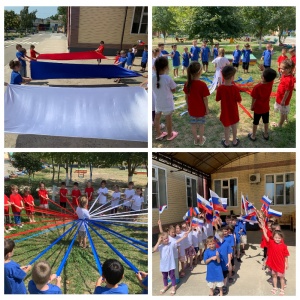 На День Государственного Флага России с нашими воспитанниками был проведен флешмоб с лентами, чтобы дать представление о символиках России, укрепить нравственно-патриотические чувства у дошкольников