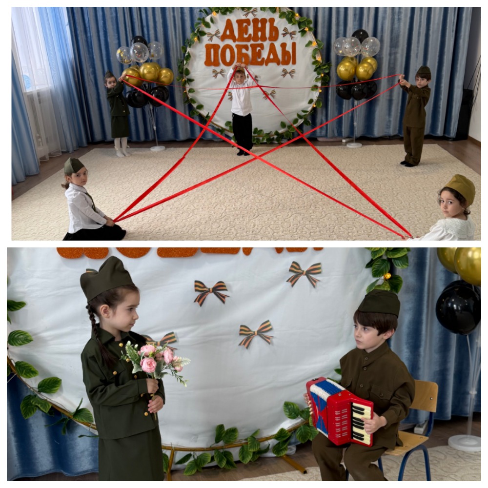 В соответствии с годовым планом в ДОУ было проведено мероприятие приуроченное Дню Победы. Где воспитанники старших групп рассказывали стихотворения и спели песни.